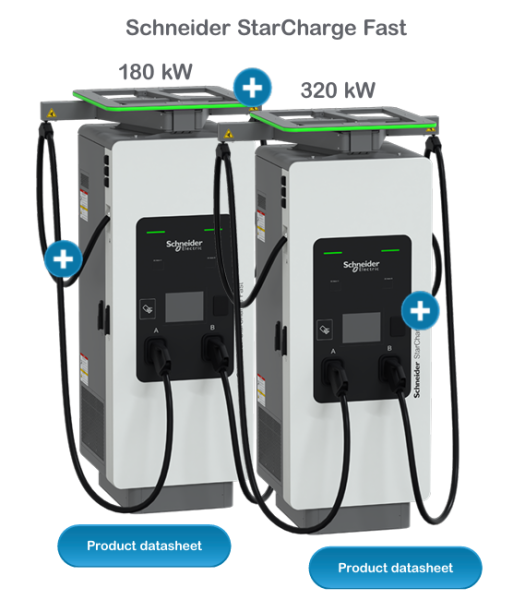 Ne glede na velikost vašega projekta – od dveh polnilnih mest do dvanajstih – Schneider StarCharge Fast 320 in Fast 720 zagotavljata hitro, pametno in prihodnosti pripravljeno polnjenje.