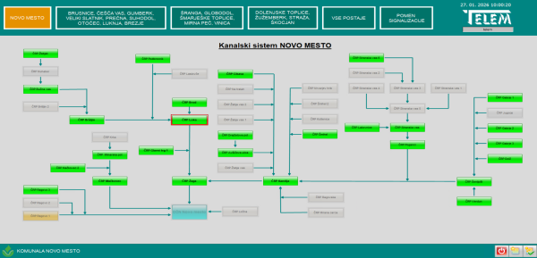 • Diagnostika: Poseben zaslon kanalskega sistema prikazuje komunikacijsko povezljivost. Ta je vidna tudi na posameznem zaslonu črpališča ali čistilne naprave.